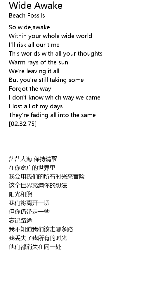 | [00:06.96] | So wide,awake |