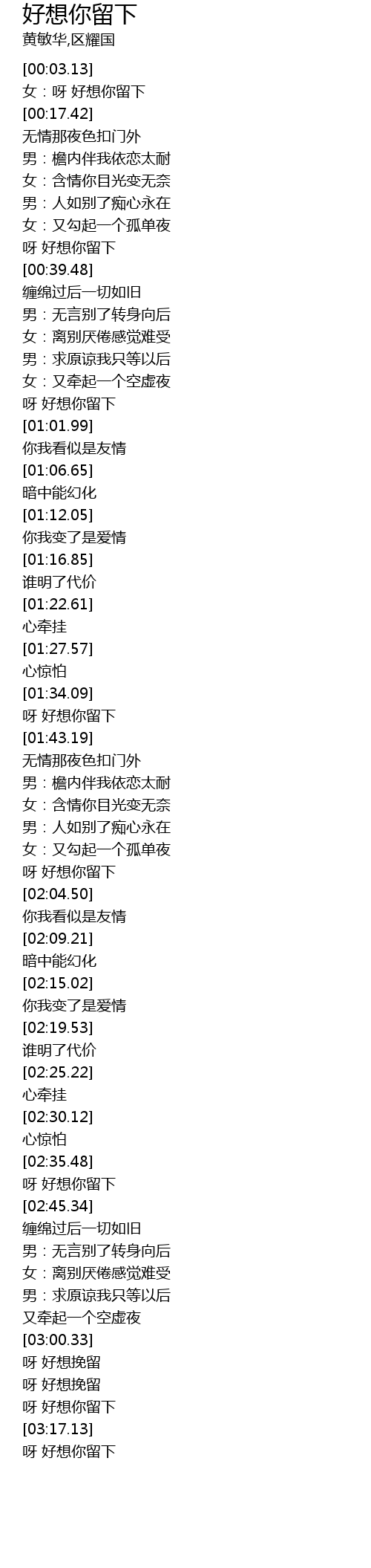| [03:30.91] | ya hǎo xiǎng nǐ liú xià |
