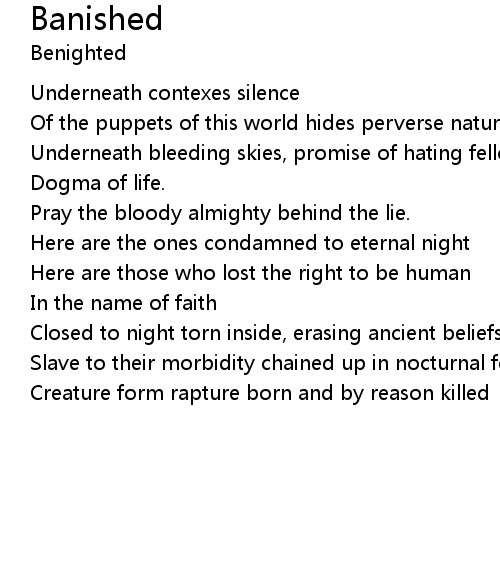 | Closed to night torn inside, erasing ancient beliefs | |