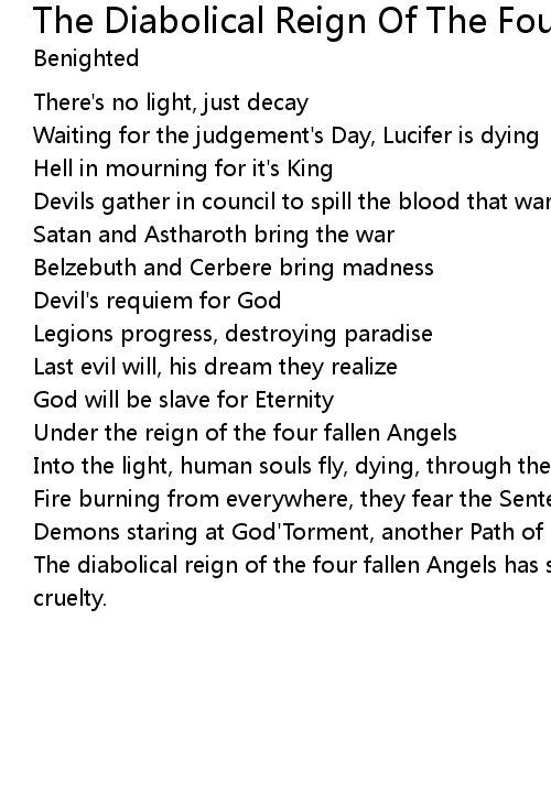 | The diabolical reign of the four fallen Angels has started under the sign of cruelty. |