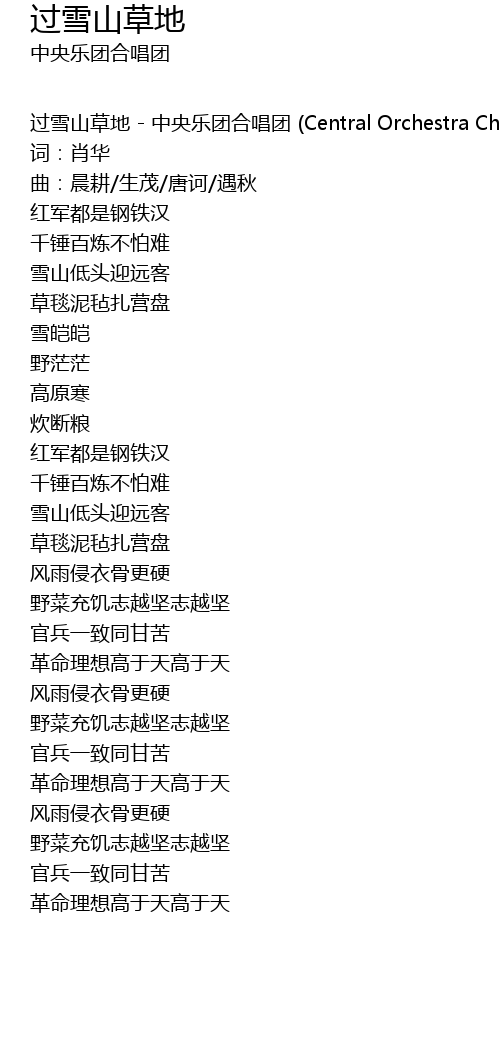 | 过雪山草地 - 中央乐团合唱团 (Central Orchestra Choir) | |