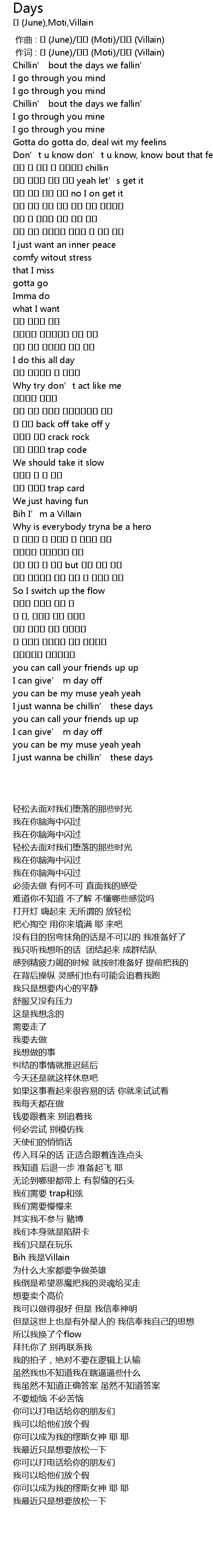 | [02:42.770] | I just wanna be chillin’ these days |
