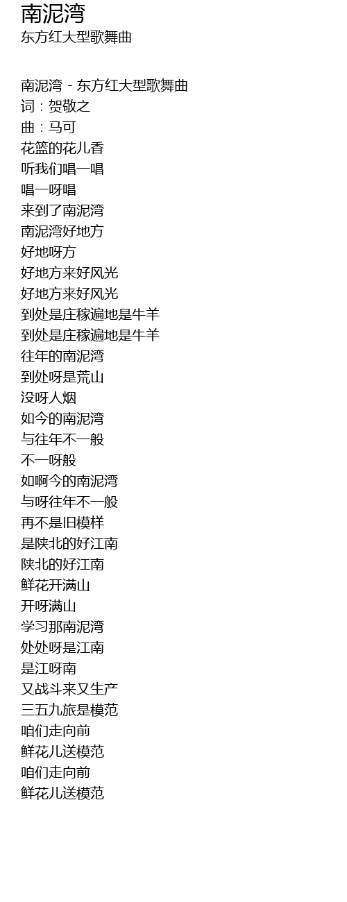 | nán ní wān dōng fāng hóng dà xíng gē wǔ qǔ | |