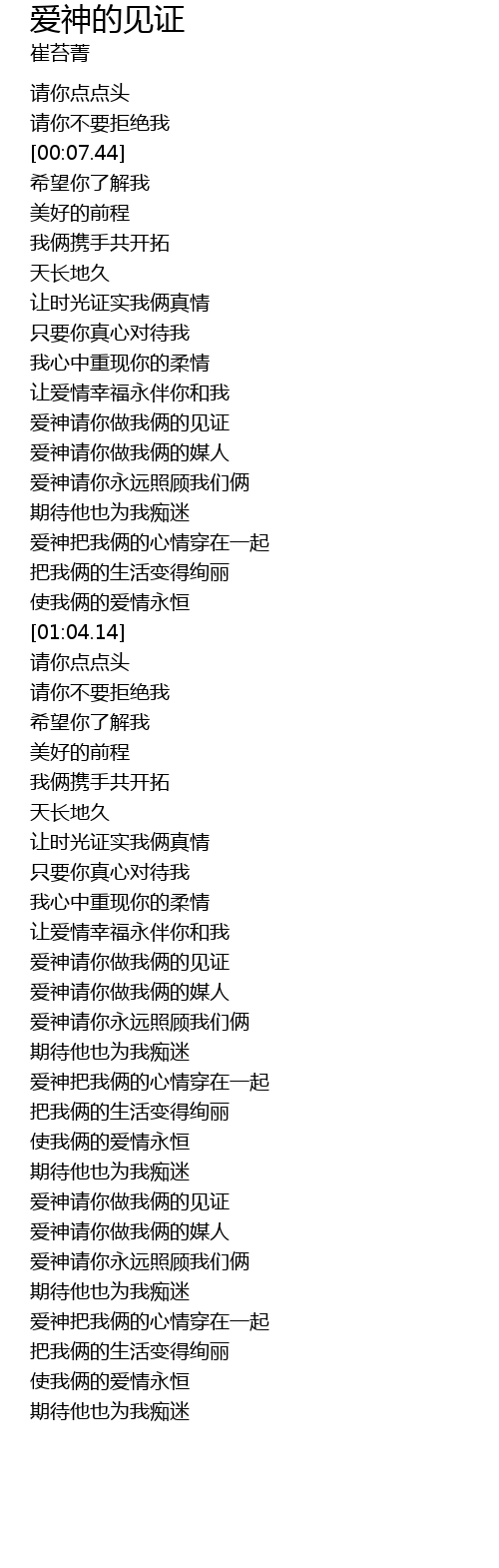 [01:40.39] ài shén qǐng nǐ zuò wǒ liǎ de jiàn zhèng
