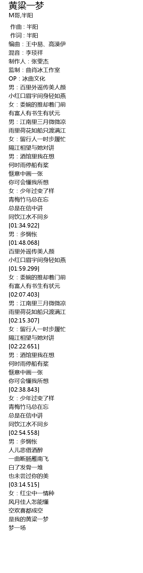 | [03:26.883] | shì wǒ de huáng liáng yī mèng |