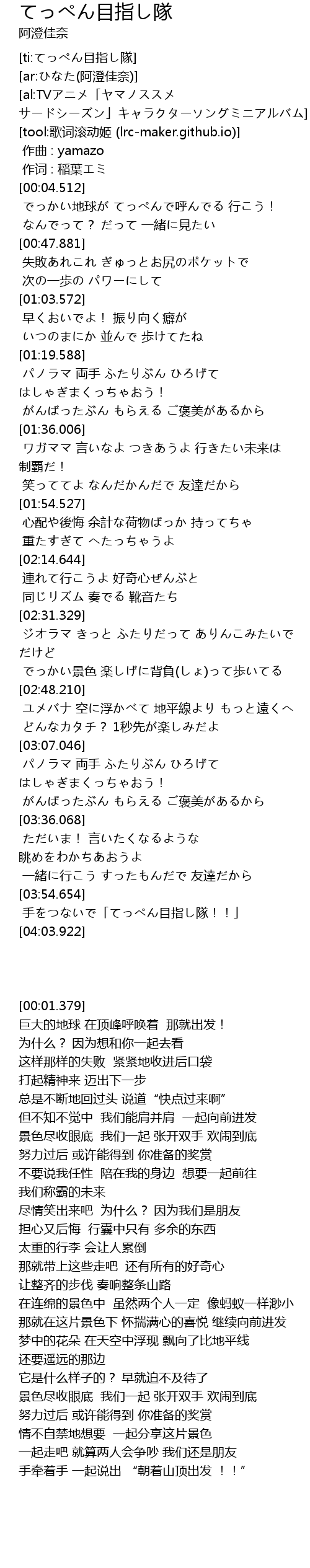 | [03:55.339] | 手をつないで「てっぺん目指し隊!!」 |
