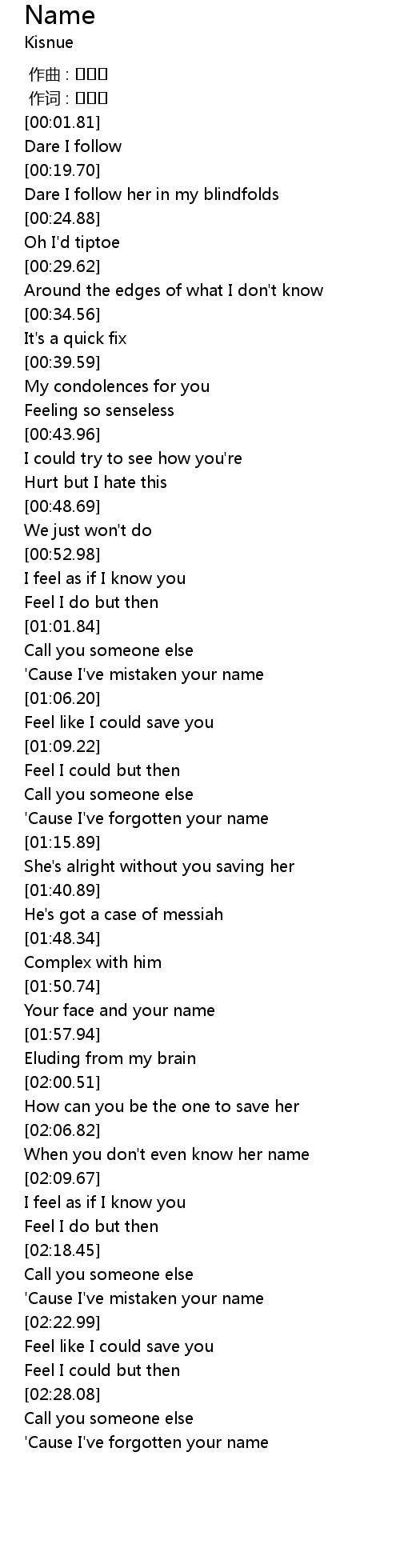 | [02:30.85] | ' Cause I' ve forgotten your name |