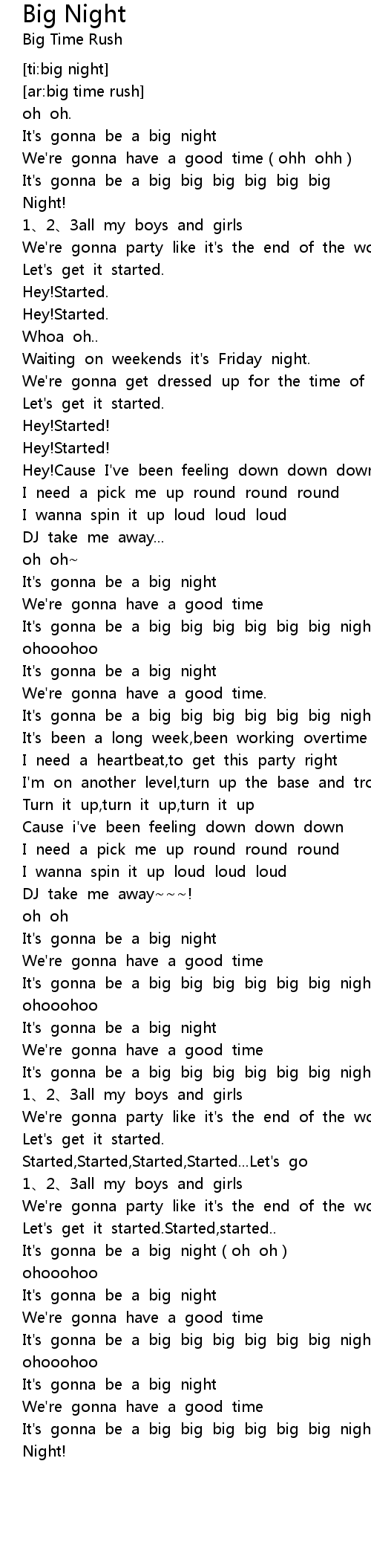 | [03:07.23] | It' s gonna be a big big big big big big night. |