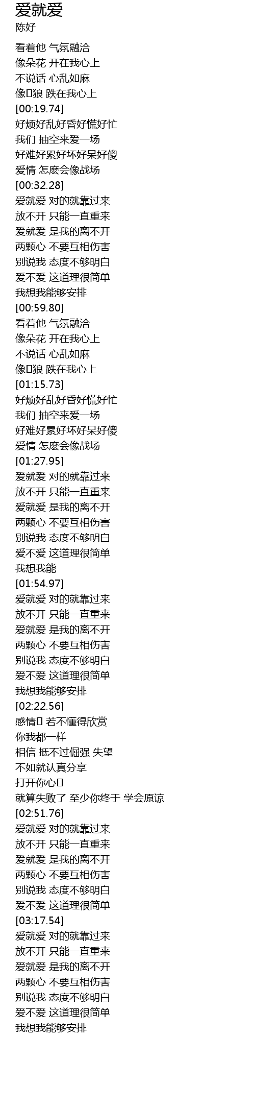 | [03:19.61] | 爱就爱 对的就靠过来 |