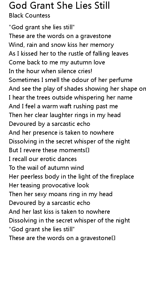 | Song | God Grant She Lies Still |