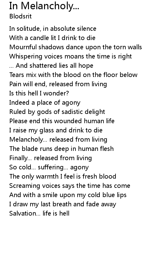 Melancholy... released from living |