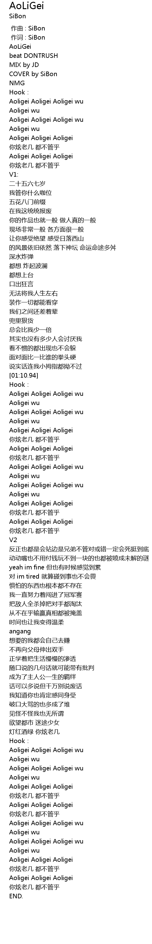 | [01:19.49] | Aoligei Aoligei Aoligei |