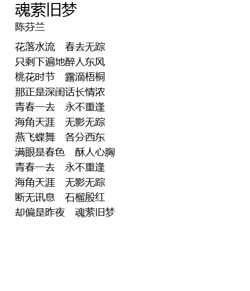 | [00:34.64] | 桃花时节 露滴梧桐 |