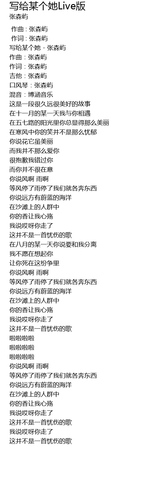 | [00:03.21] | 写给某个她 - 张森屿 |