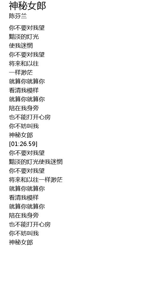 | [01:52.75] | 黯淡的灯光使我迷惘 |