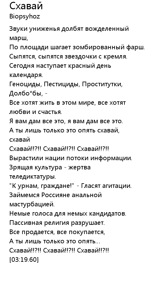 А ты лишь только это опять схавай, схавай |
