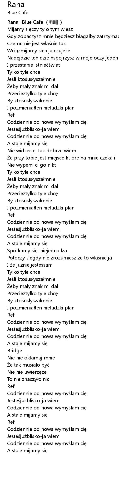 | [00:00.00] | Rana -Blue Cafe (咖啡) |