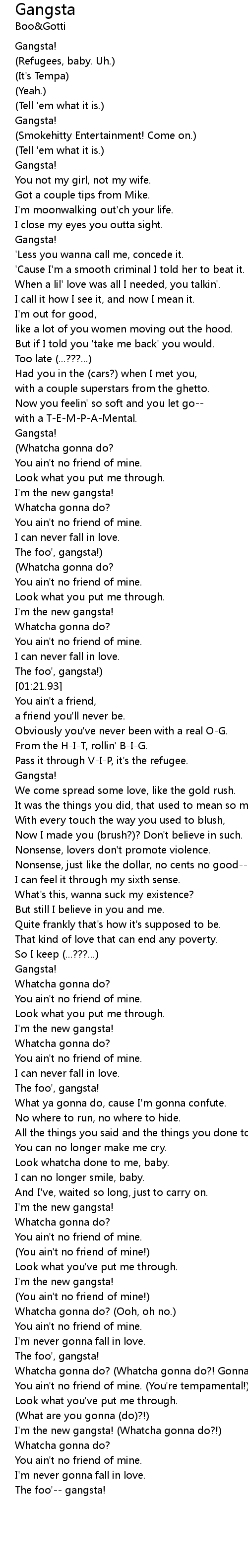 [01:21.40] The foo', gangsta!)