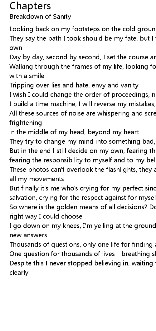 But finally it's me who's crying for my perfect sincerity, crying for my salvation, crying for the respect against for myself |