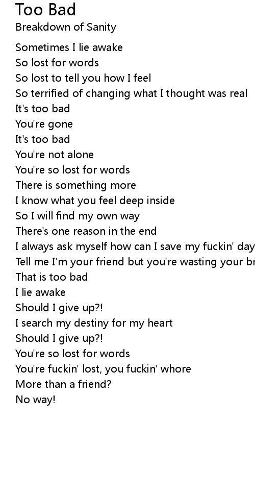 Too Bad Lyrics