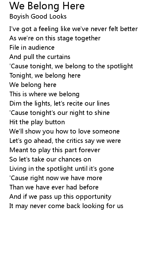 Tonight, we belong here |