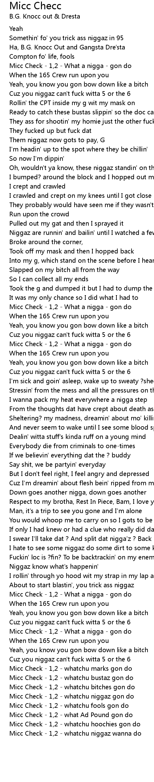 [03:47.25] Micc Check - 1,2 - whatchu niggaz gon do