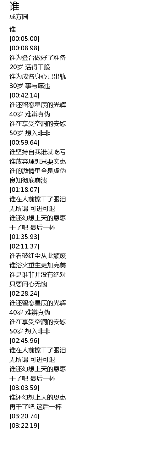 | [01:18.70] | 谁在人前擦干了眼泪 |