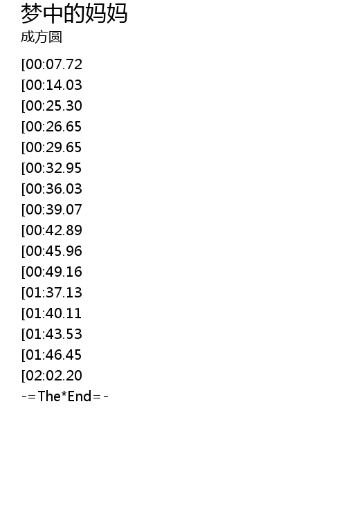| [01:05.38][00:07.72] | -= 成方圆 《 梦中的妈妈 》=- |
