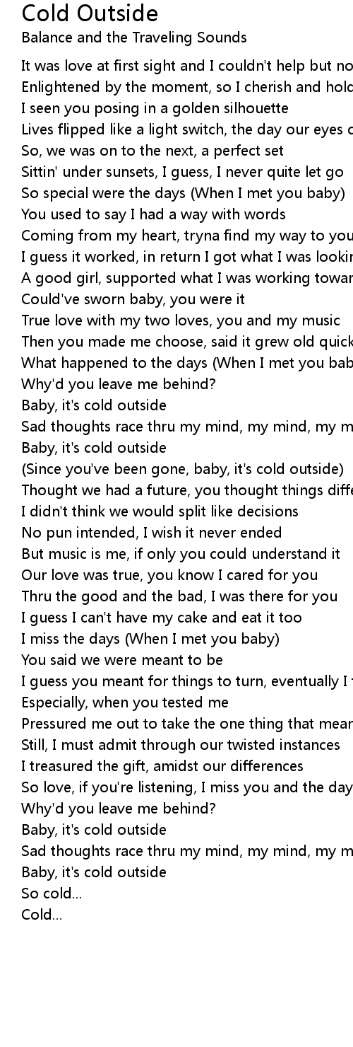 So love, if you're listening, I miss you and the days (When I met you baby) |