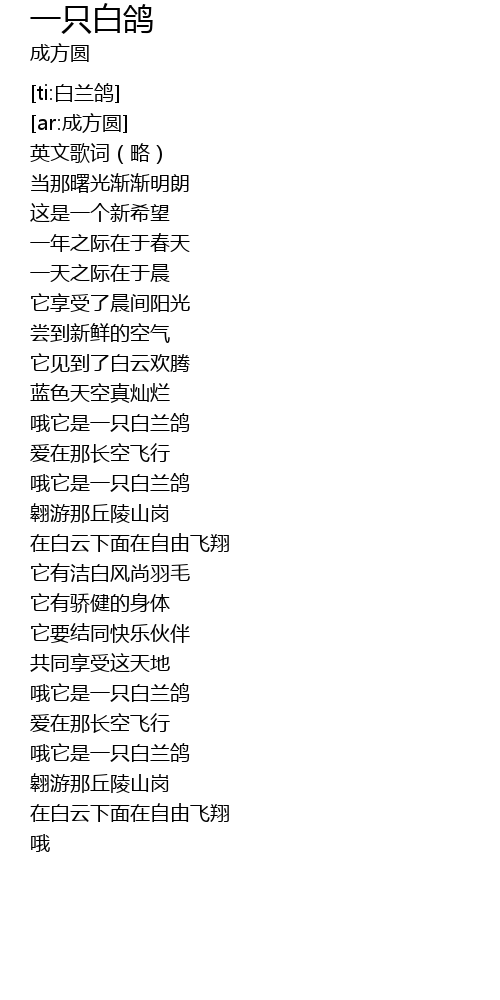 | [02:00.361] | 哦它是一只白兰鸽 |