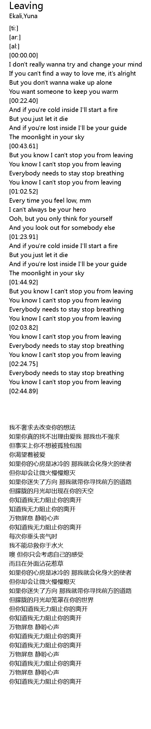 | [02:15.44] | Everybody needs to stay stop breathing |