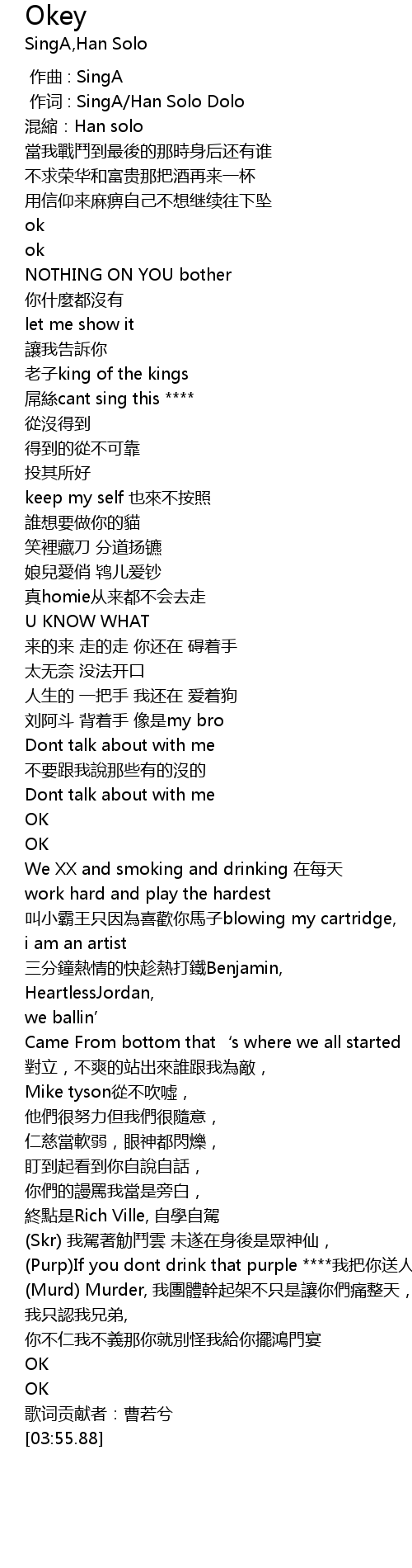 | [00:01.000] | 作词 : SingA/Han Solo Dolo |