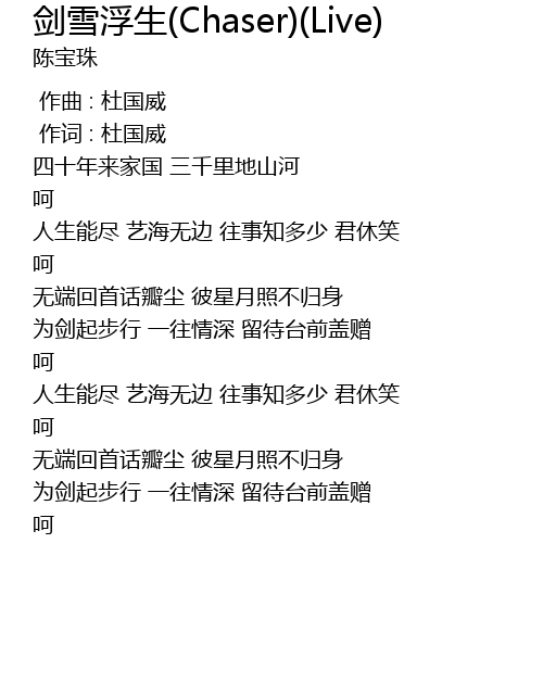 | [01:23.18] | 为剑起步行 一往情深 留待台前盖赠 |