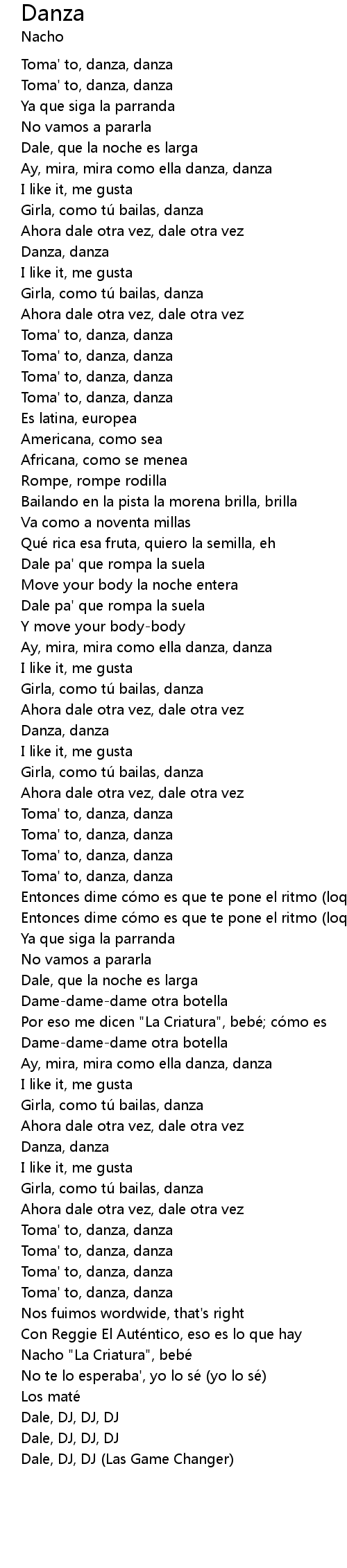 | [00:34.03] | Toma' to, danza, danza |