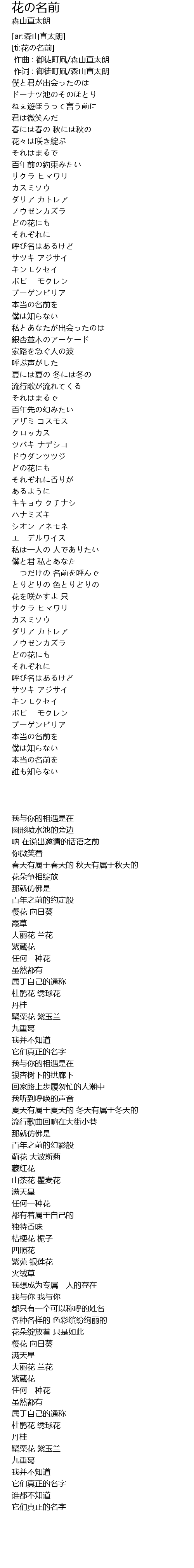 | [ti:花の名前] | |