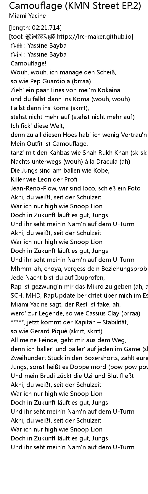 | [01:25.208] | Miami Yacine sagt, der Rest ist fake, ah, |