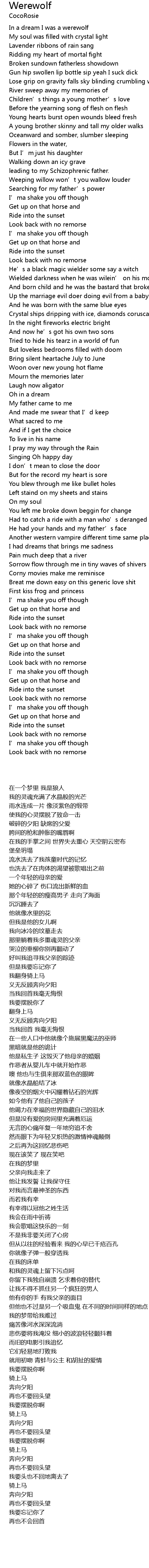 | [00:00.17] | In a dream I was a werewolf |