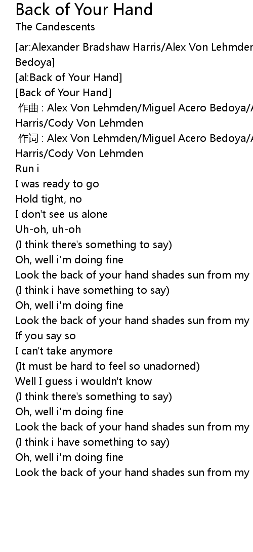 | [00:45.00] | Look the back of your hand shades sun from my eyes |