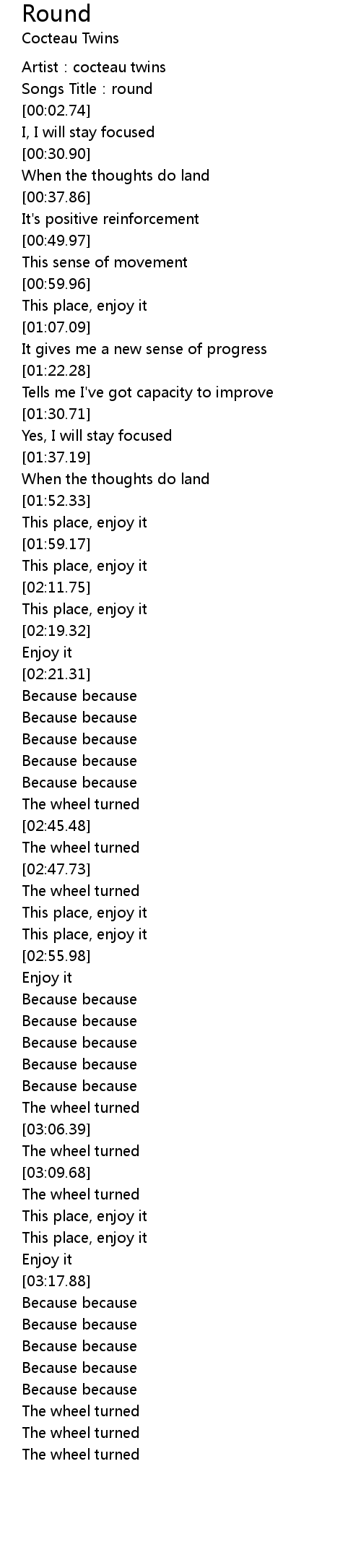 | [00:01.62] | Songs Title:round |