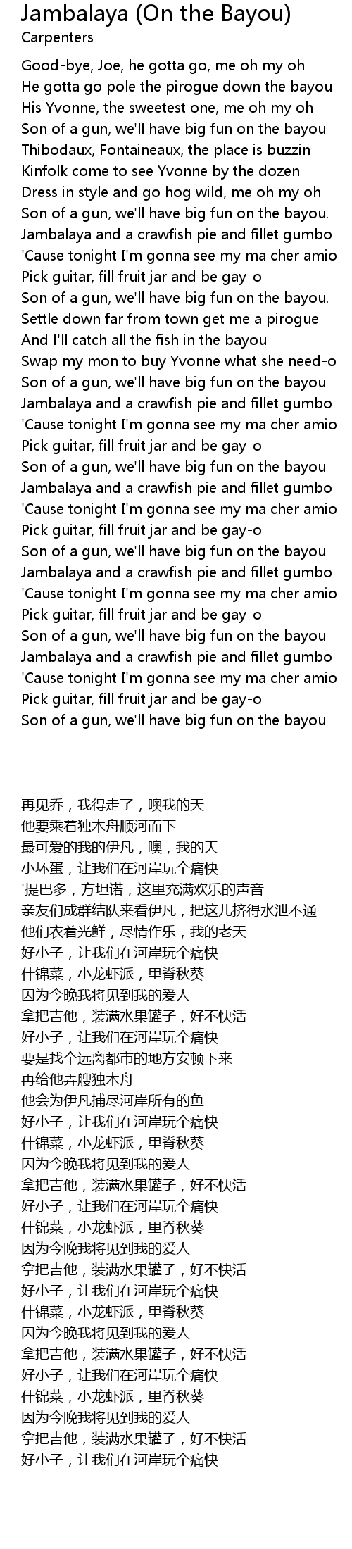 Song Jambalaya (On the Bayou)