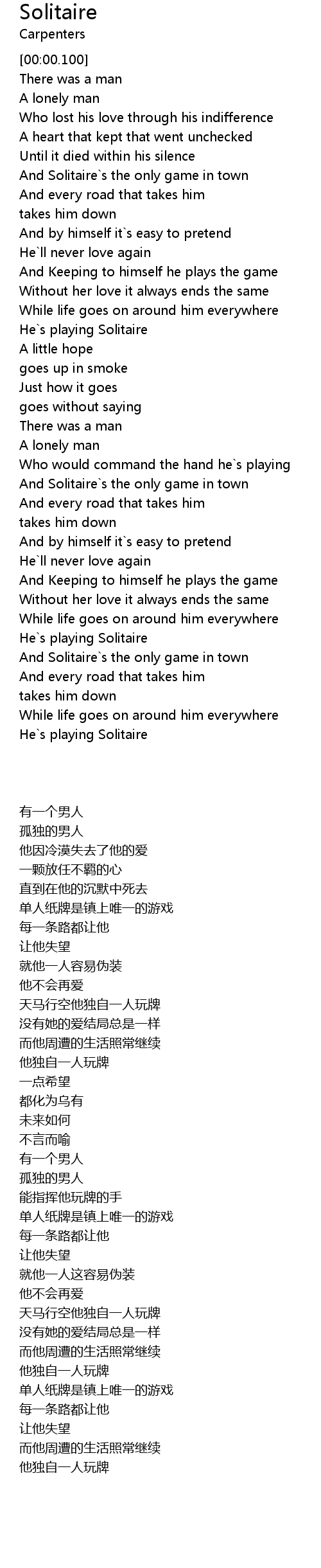 And Solitaire`s the only game in town |