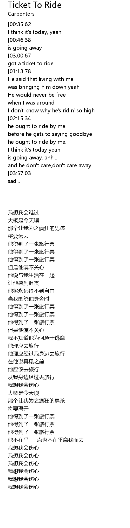 [03:08.14][03:00.67][02:55.96][01:59.79][01:52.38][01:47.37][01:09.70][01:02.11][00:56.92] He's got a ticket to ride