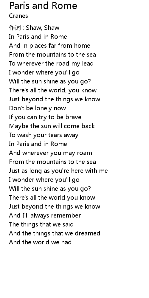 | Song | Paris and Rome |