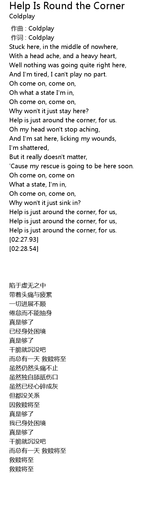| [01:29.65] | 'Cause my rescue is going to be here soon. |