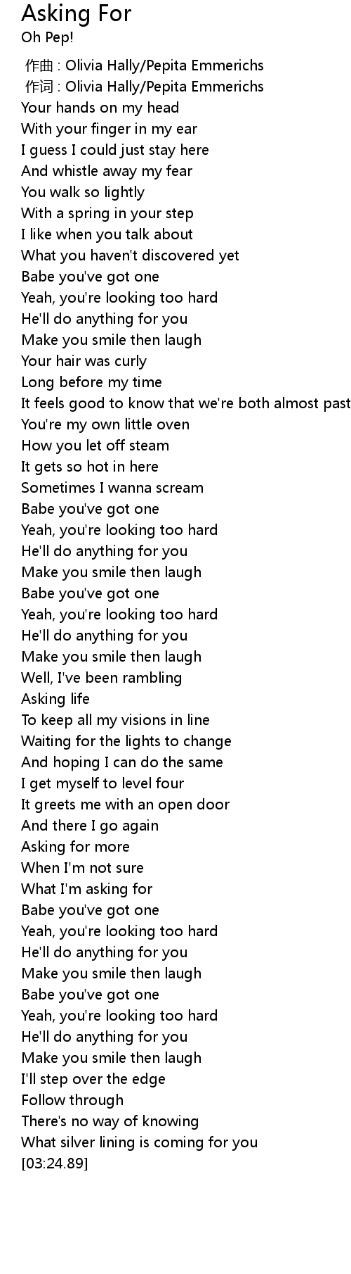 | [02:32.38] | What I'm asking for |