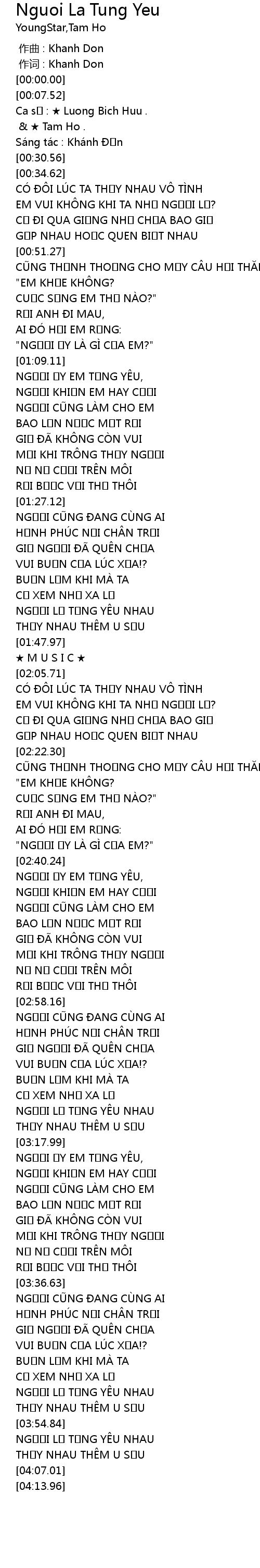 | [03:54.99] | NGƯỜI LẠ TỪNG YÊU NHAU |