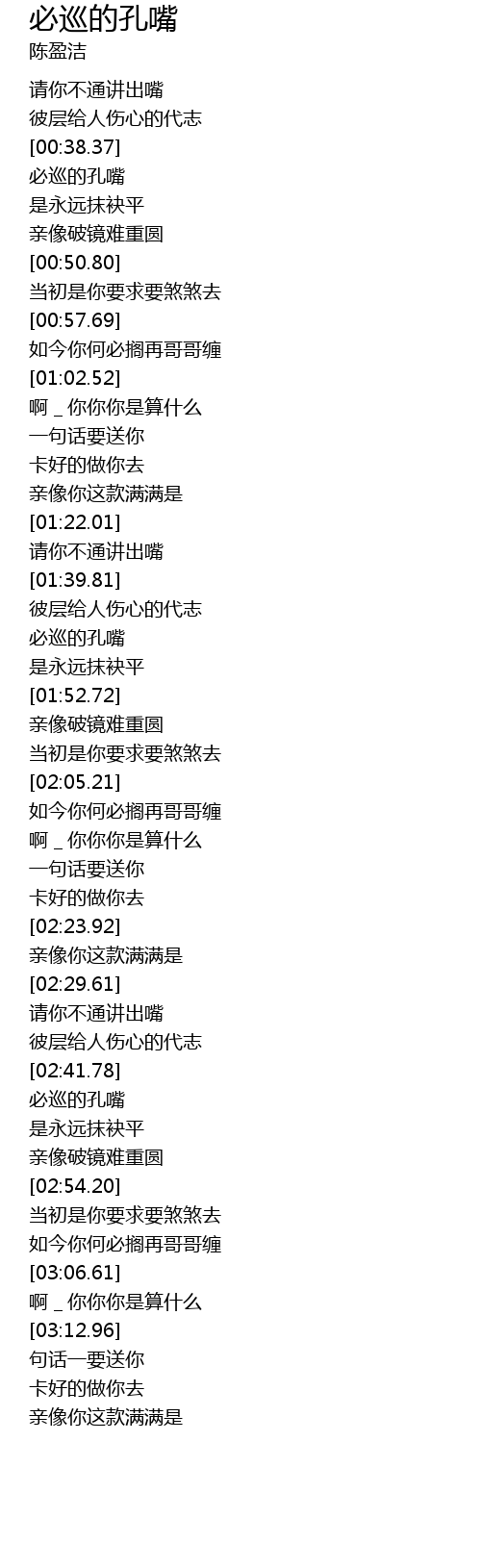 | [02:42.65] | bì xún de kǒng zuǐ |