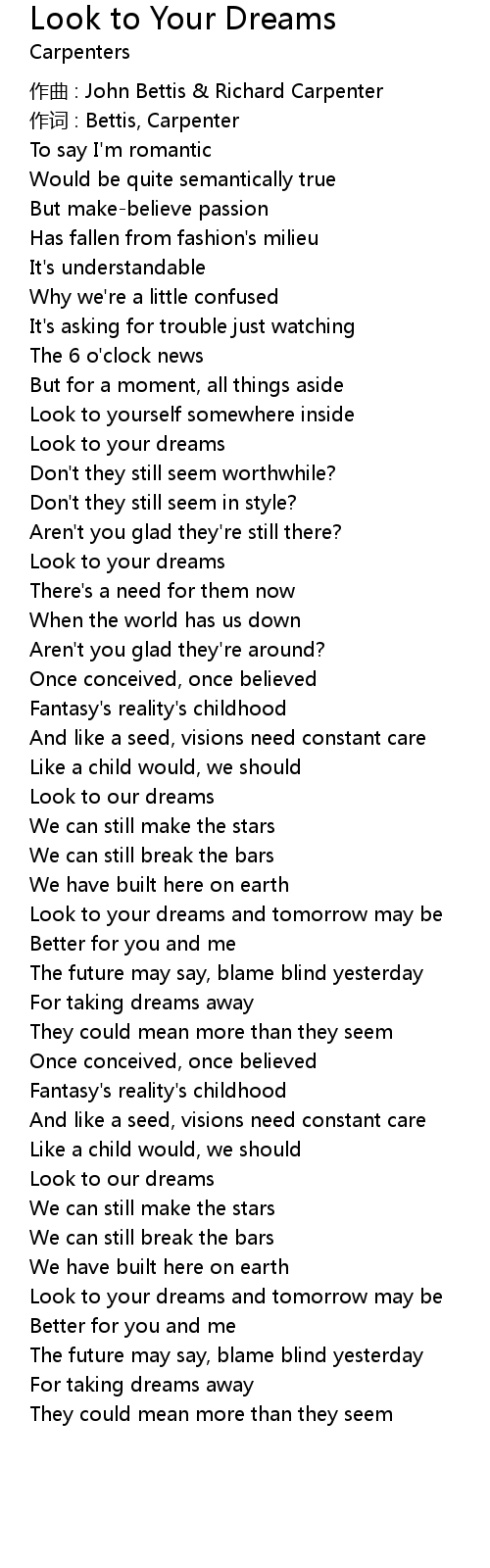 | Look to your dreams | |