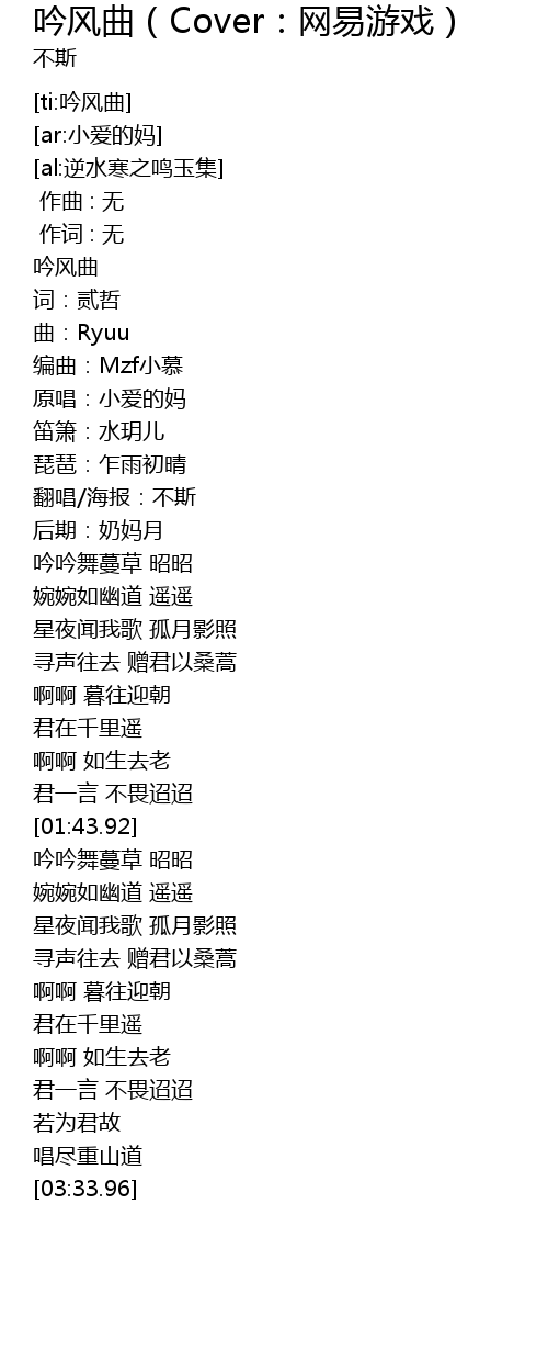 | [00:56.85] | 寻声往去 赠君以桑蒿 |