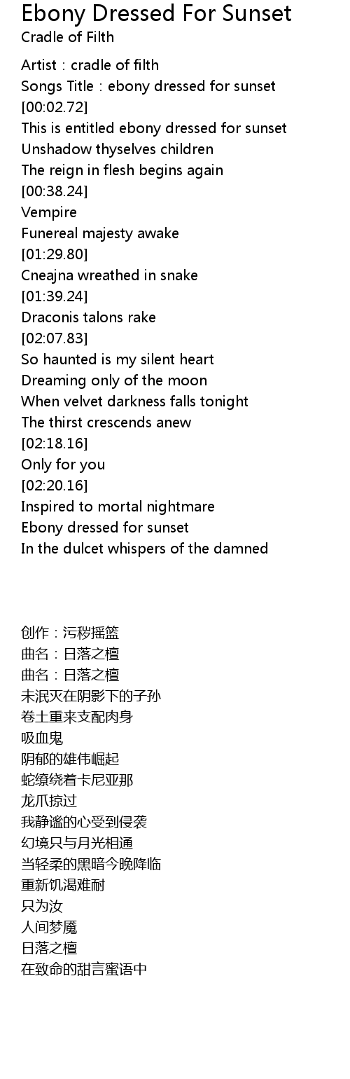 | [00:01.15] | Songs Title: ebony dressed for sunset |
